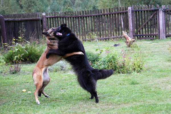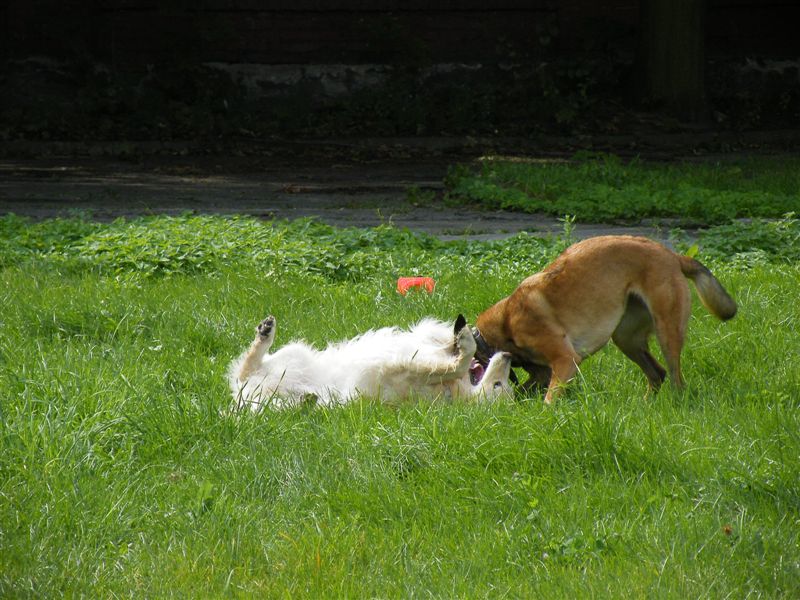 I relacje między nimi nie zostały ostatecznie ustalone – pies, chociaż fizycznie słabszy od suki, nie potrafił się jej podporządkować, a i suka nie była pewna swojej pozycji. Lepiej było nie spuszczać ich z oczu – każda zabawa mogła przerodzić się bijatykę, nie taką bardzo poważną, ale szarpiącą nerwy obu właścicielkom na pewno.
